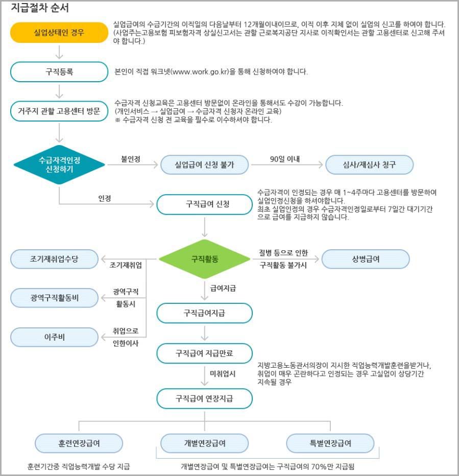 - 실업인정 신청: 매 2주마다 고용센터를 방문하거나 온라인으로 실업인정 신청을 해야 합니다.
